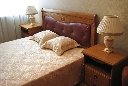 Благородная древесина дуба, резной орнамент, плавные линии брусков, фурнитура с оттенком старины, мягкая спинка кровати создают атмосферу покоя и защищённости. Стол туалетный в виде трельяжа будет находкой для тех, кто любит следить за своей внешностью, так как он позволяет оценить ее не только спереди, но и со всех сторон.