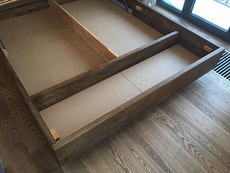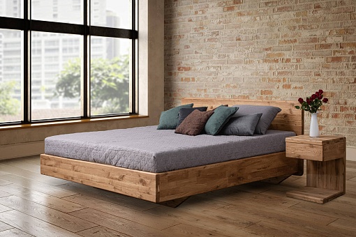Кровать коллекции «Паола» изготовлена из массива дуба рустик с сучками толщиной 40 мм, что делает кровать массивной и основательной. Благодаря изысканной конструкции, кровать выглядит невесомой и свободно парит в комнате. Кровать изготавливается с подъемным механизмом матраса.
