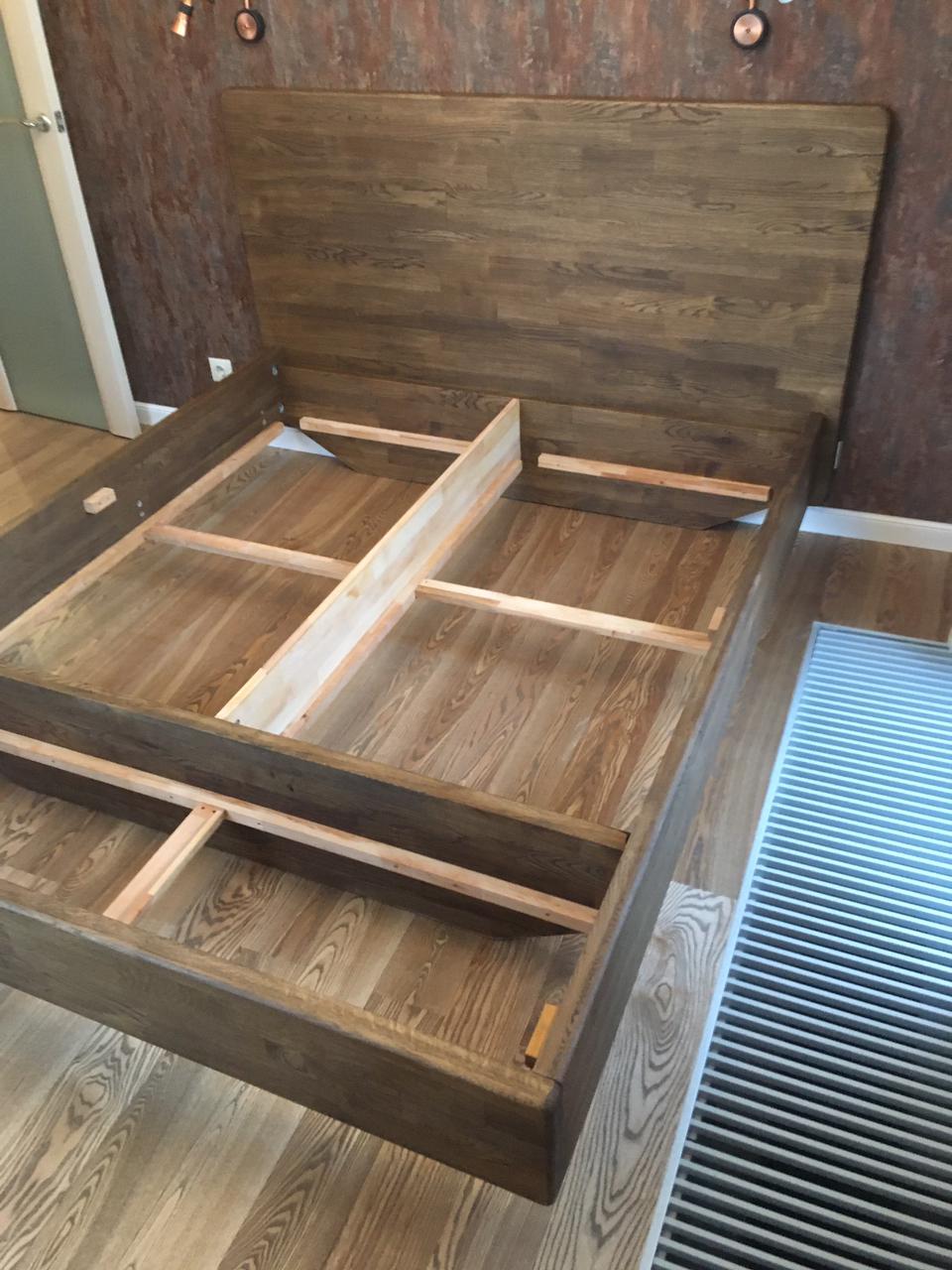 Кровать коллекции «Паола» изготовлена из массива дуба рустик с сучками толщиной 40 мм, что делает кровать массивной и основательной. Благодаря изысканной конструкции, кровать выглядит невесомой и свободно парит в комнате. Кровать изготавливается с подъемным механизмом матраса.