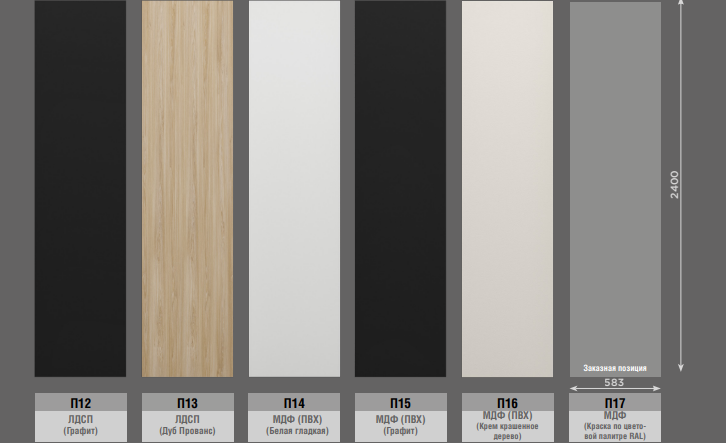 Материал:Линейка шкафов ОТИС предлагает 9 вариантов исполнения фасадов.