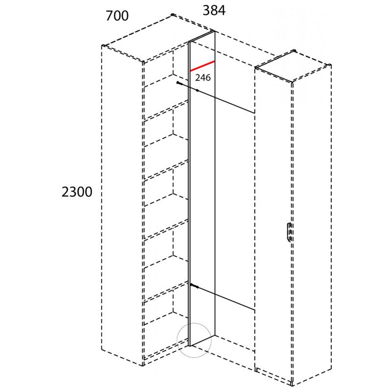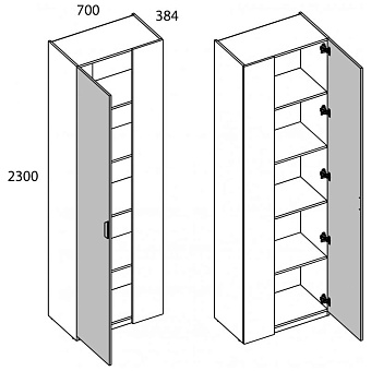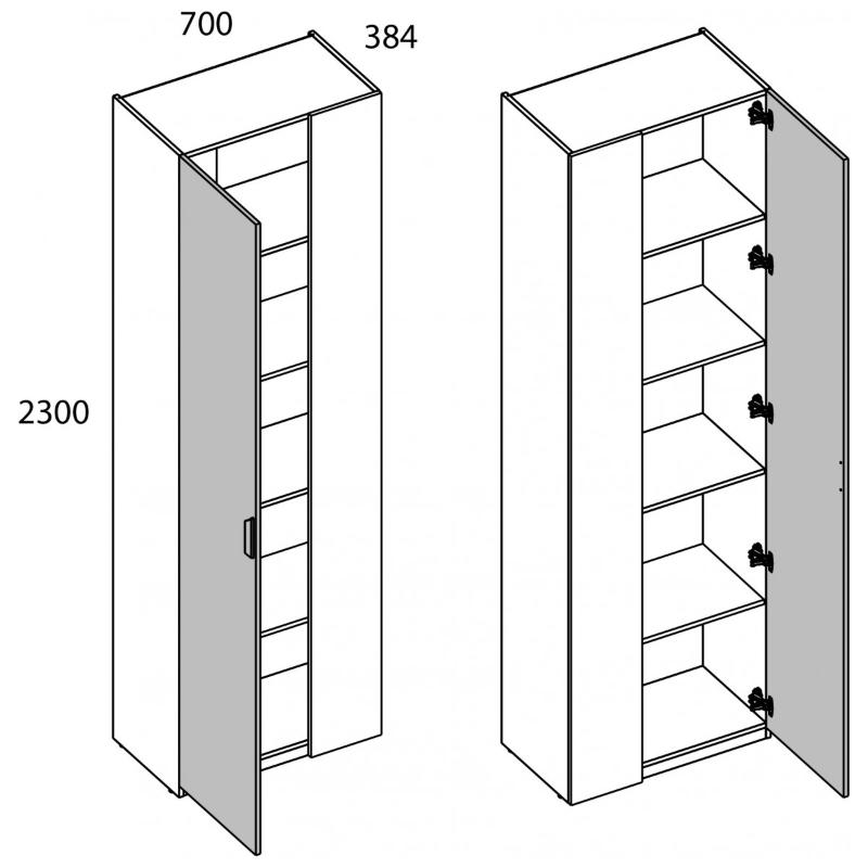 Шкаф 1D/K70 MODERN. Конструкция данной модели позволяет оформить угловые шкафные группы для большей оптимизации пространства. Можно установить в любом помещении по функционалу – гостиной, спальне, молодёжной/детской комнате, прихожей или гардеробной зоне. Конструкция шкафа 1D/K70 MODERN прямая, представляет одно отделение с полками ЛДСП за одной глухой дверью (1D) и стенкой передней (стационарная). Дверь распашная, крепится на петли к боковому корпусу изделия. Угловая композиция получается за счёт присоединения элементов шкафной группы глубиной 400 мм к стенке передней посредством крепежа. Особенностью элемента являются компактность, стильность, использование петель с доводчиками, высота – 2300 мм, установка угловой группы, практичная матовая текстура – персидский жемчуг.