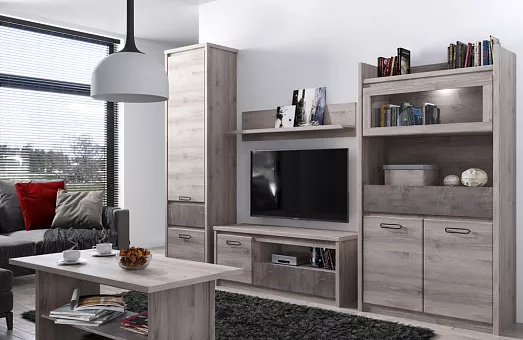 Коллекция JAZZ выполнена в современном стиле. Отличительной особенностью этой коллекции является одновременное применение двух вариантов открывания двери: при помощи металлических ручек на одних фасадах и внутренней фрезеровки на других. Фасады выдвижных ящиков могут быть выполнены как в цвете оникс, так и в цвете каштан найроби. Эта мебель станет заслуженным украшением для любого интерьера.