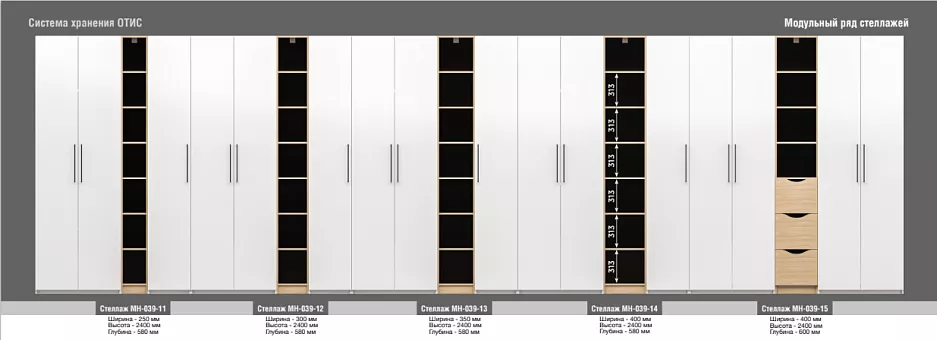 Материал:Линейка шкафов ОТИС предлагает 9 вариантов исполнения фасадов.