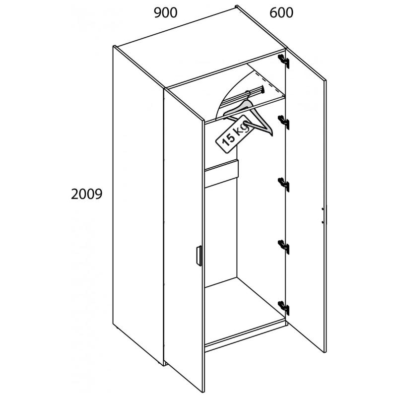 Шкаф 2DG-1 MODERN – практичное решение для хранения предметов одежды, которое обеспечивает лёгкий доступ к содержимому. Отличается от шкафа 2DG/2DG Z меньшей высотой – 2009 мм. Конструкция шкафа 2DG-1 MODERN прямая, представляет одно гардеробное отделение (G) с полкой и стационарной штангой за двумя глухими дверями (2D). Особенностью элемента является его компактность и простота использования, небольшая высота (например, для невысоких людей, которым необходимо с лёгкостью брать повседневные вещи; для помещений с невысокими потолками; если нет необходимости в высокой мебели), практичная матовая текстура – персидский жемчуг.