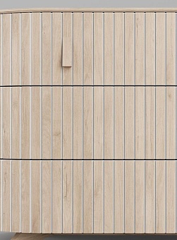 Корпус каждого изделия, верхняя крышка, полки и фасады изготовлены из МДФ и шпона дуба.