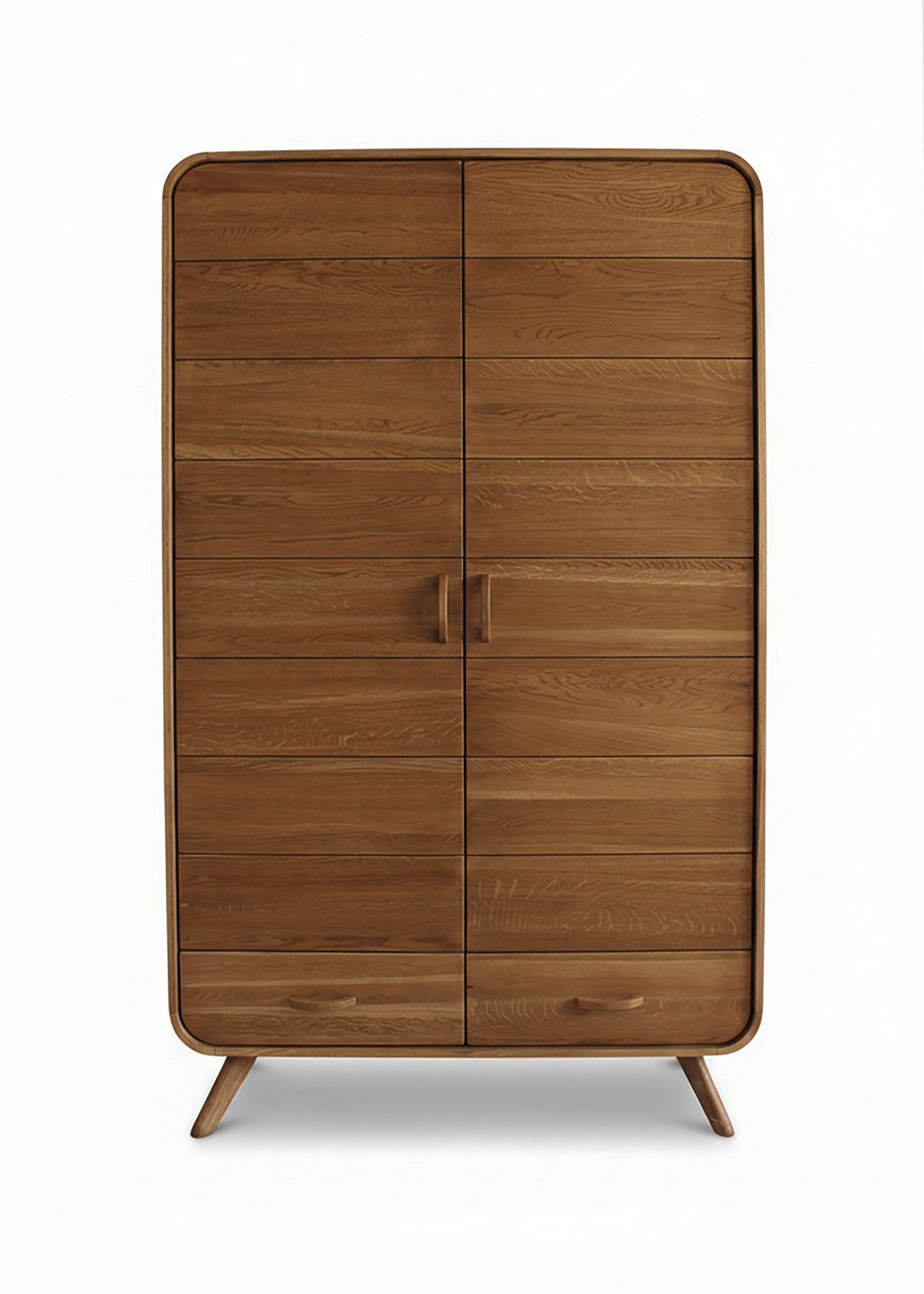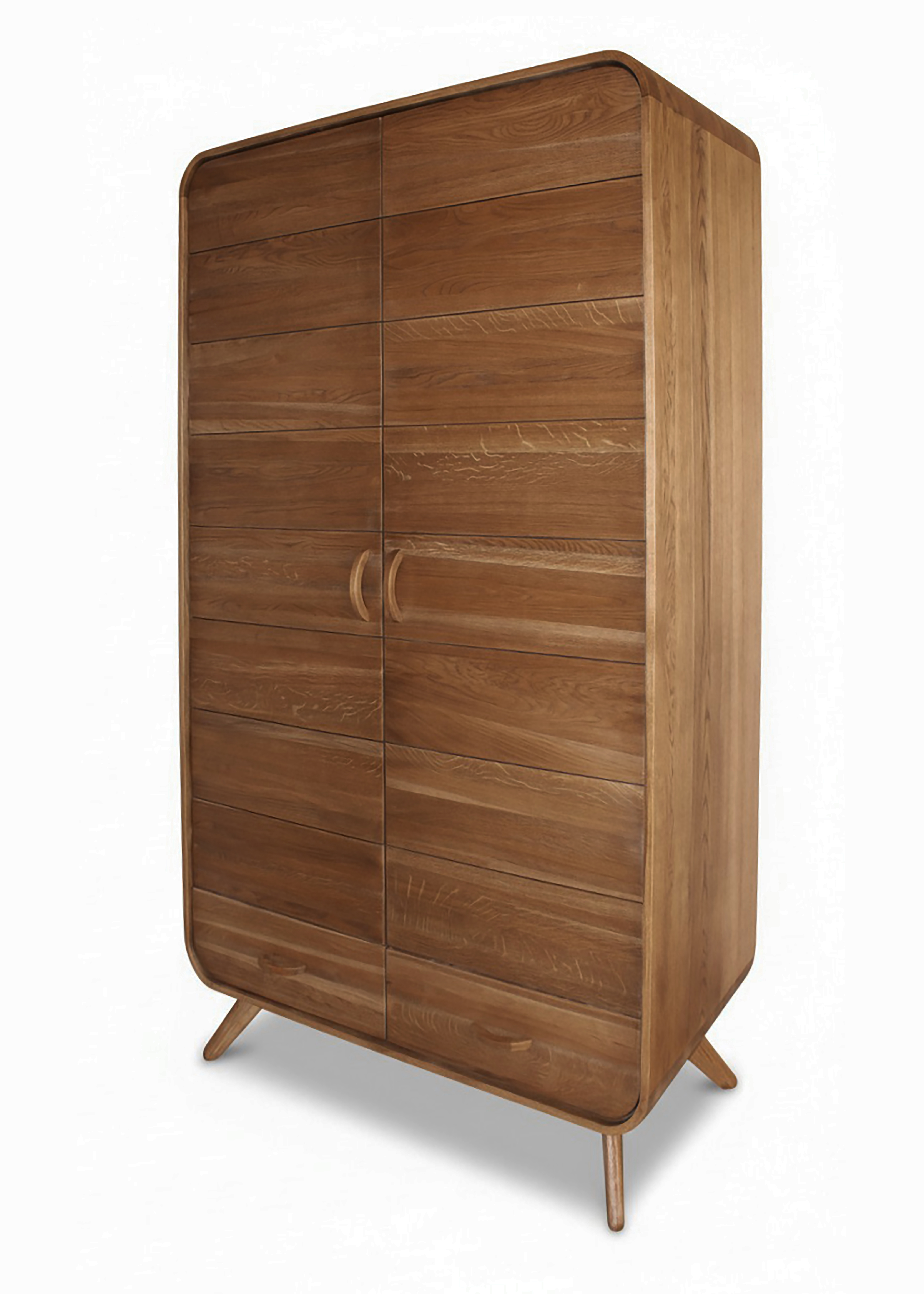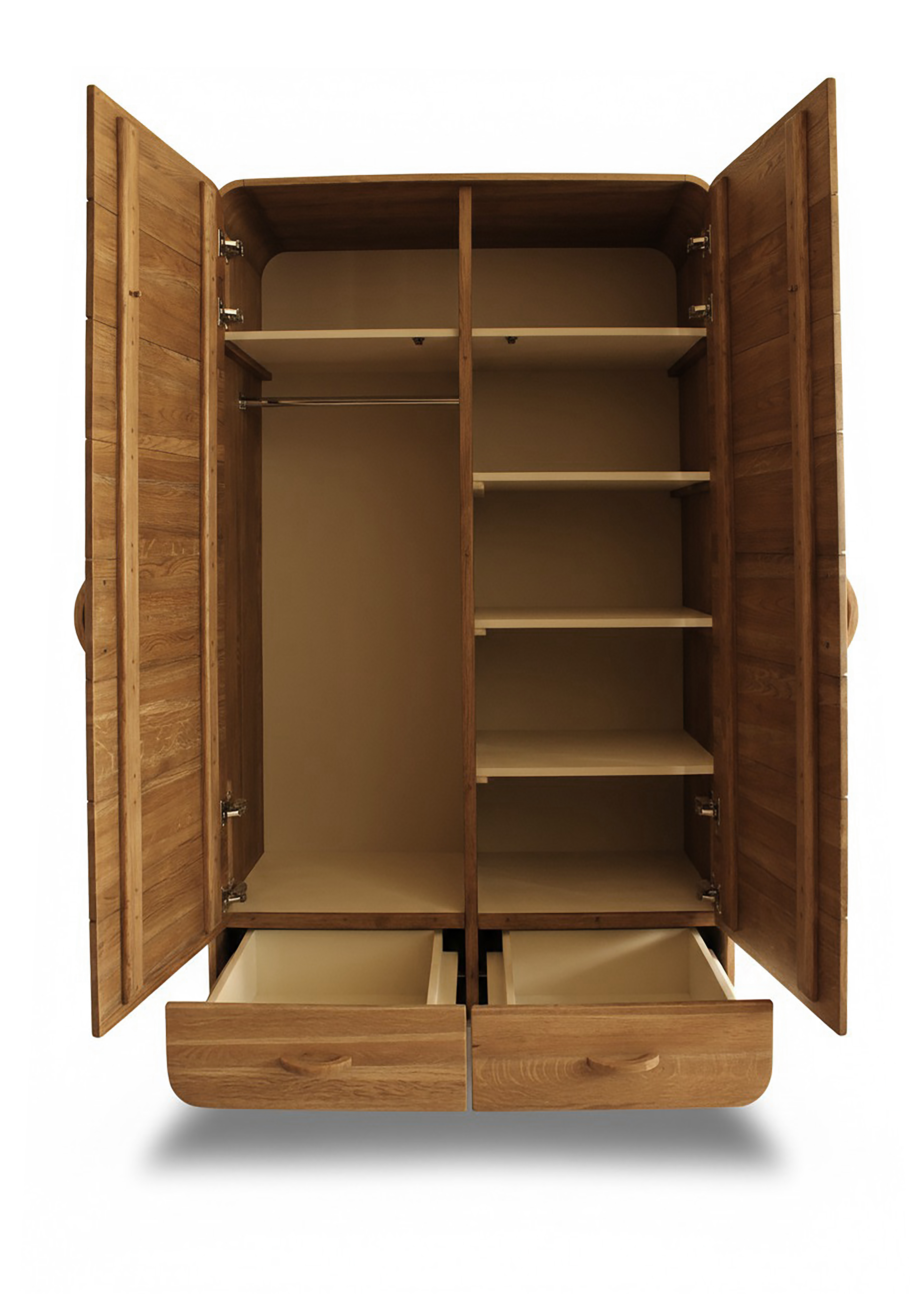 Низ - два выдвижных ящика, верх: одна половина -ниша со штангой для вешалок, вторая - пять полок Производство: Россия Материал: массив дуба Отделка: морилка, масло Форма поставки: в собранном* виде Вес (кг): 140,00 Объем (м.куб.): 1,21 Количество пакетов: 1 Габариты (ширина*глубина*высота):1200*550*2000Коллекция мебели Aachen (Аахен) из цельноламельного массива дуба для спальни и гостиной. Стиль авангард. Двенадцать предметов. Особенность дизайна данной коллекции – радиусные элементы R90 мм в угловых соединениях и ручках.На мебель устанавливаются петли и шариковые направляющие с плавной доводкой. Есть возможность изготовления по индивидуальным размерам заказчика.