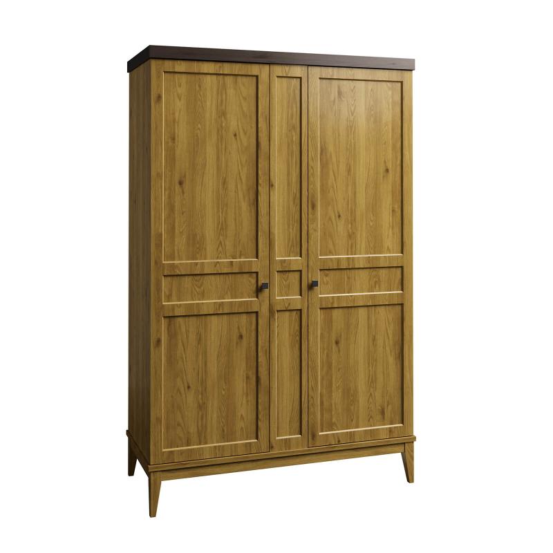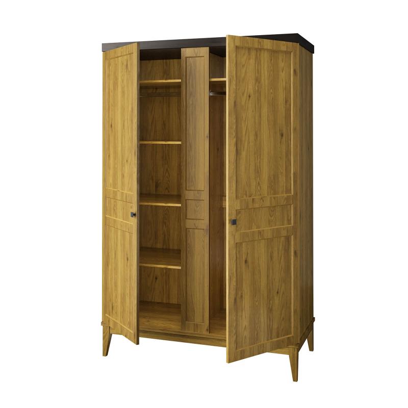 Шкаф оснащен распашными дверями, которые удобно открываются, предоставляя легкий доступ к содержимому. Внутреннее пространство шкафа продумано до мелочей: здесь достаточно места для хранения одежды, постельного белья или других вещей. На высоких ножках шкаф визуально "поднимает" пространство, что создает ощущение легкости и позволяет легко очищать полы под ним.