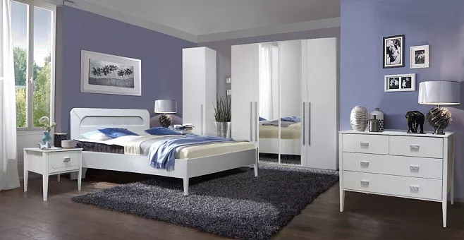 Фасад набора мебели, крышки комода и тумбы прикроватной, выполнены из плит МДФ, каркас из плит ДСП.