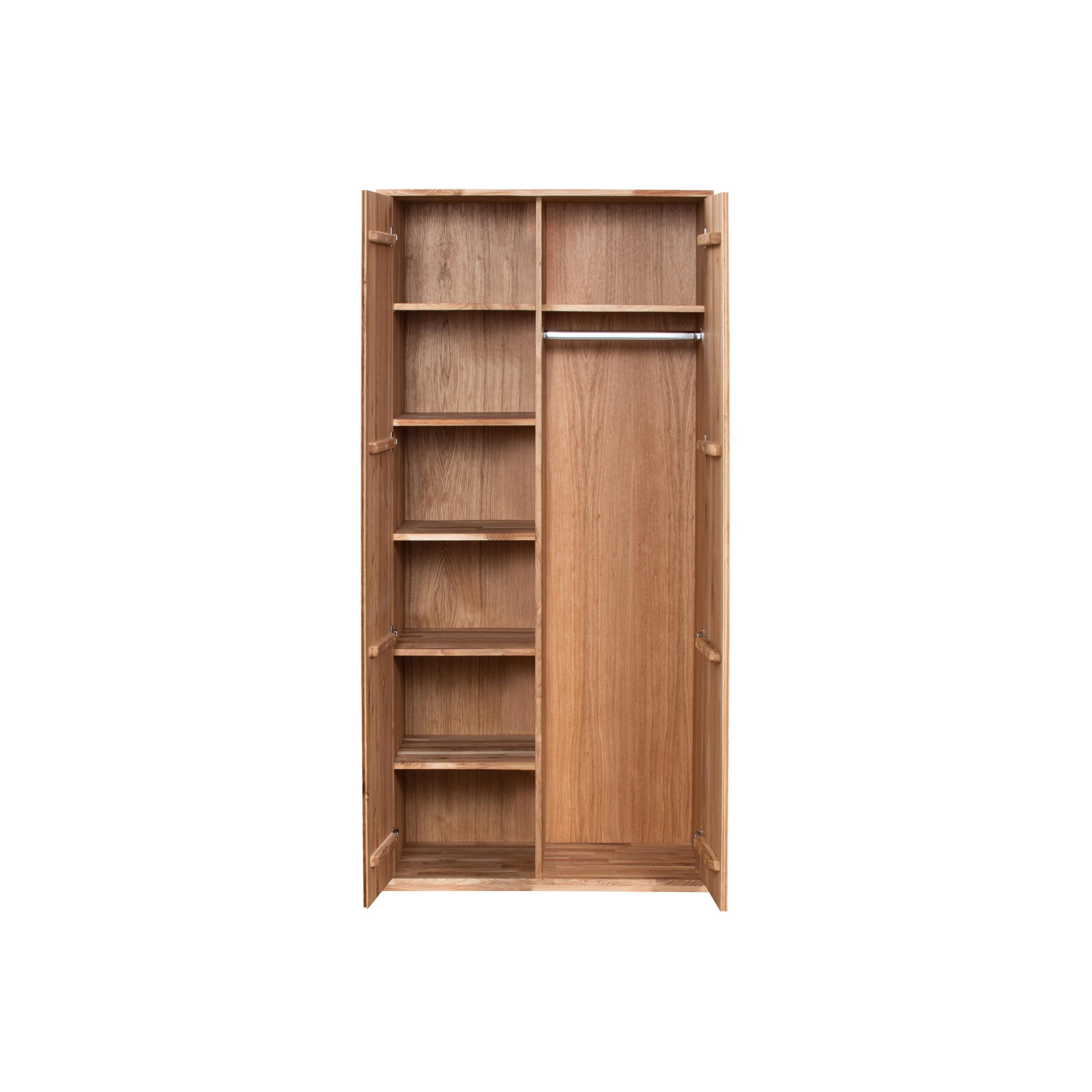Шкаф коллекции «Паола» изготовлен из 100 % массива дуба рустикаль с сучками. Шкаф представлен в 2-ух видах: двустворчатый и трехстворчатый, с возможностью выбора по внутреннему наполнению и по высоте. Шкаф оснащен удобными полками для хранения, а также со штангой с полками сверху. В изделии используется качественная фурнитура с доводчиком. На фасадах выполнена фрезеровка для открытия.