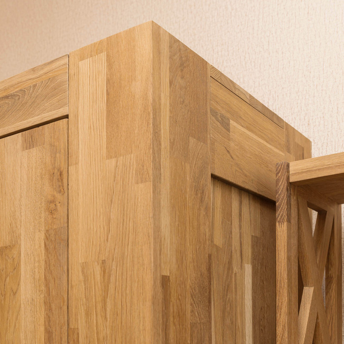 Серия Фьорд выполнена в скандинавском стиле, полностью из массива дуба. Поступает в разобранном виде. Каркас-массив дуб, фасад- массив дуб. Задняя стенка, дно ящиков - фанера, облицованная шпоном дуба. Вес изделия 135 кг. Фотографии на сайте могут не передавать точный тон мебели.