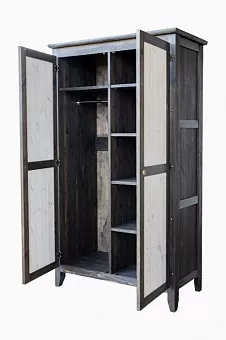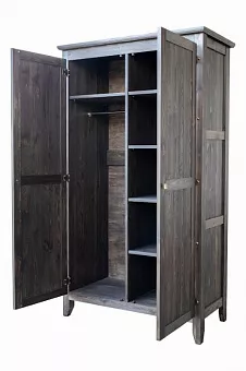 Мебель серии Калифорния изготовлена из натурального массива сосны. Внутри шкафа с одной стороны полки, с другой - полка и штанга. Изготавливается в 7 различных цветах: дуб, махагон, зелёный,африканский венге, прованс (серый), маренго светлый, палисандр. Тон мебели может отличатся от фотографии на сайте.