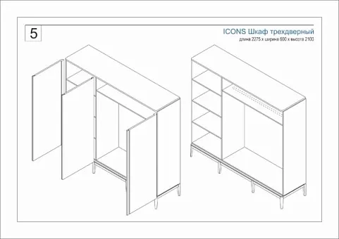 - Артикул Шкаф для одежды 3-х дверный ICONS РВ 103 Беленый дуб