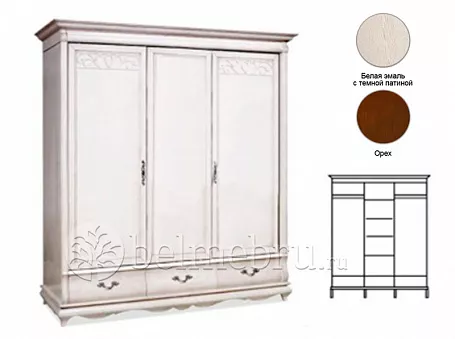 Отделка: лак — на водной основе, варианты цвета – «орех», « белая эмаль + патина тёмная». Вес изделия 280 кг.