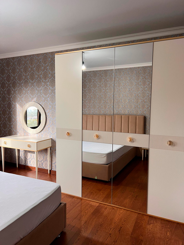 Шкаф 4-х створчатый Глория выполнен из МДФ, в современном стиле. Крашения M11 (белый) и M18 (ваниль) с золотой или серебрянной патиной, но если патина серебро, то ручки только заказные за доплату. Шариковые направляющие BOYARD полного выдвижения, ящики из фанеры в лаке прозрачном. Дополнительно возможна установка с доводчиками. Ручки металлические. Возможно изготовление в нестандартном размере, подробности уточняйте у менеджеров.