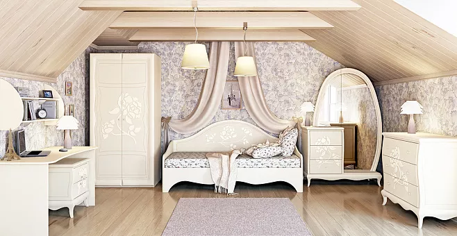 Спальня «Астория» является последним трендом Миланской выставки. Спальня станет отличным решением для тех, кто ценит природную красоту материалов и натуральные формы, так как поверхность всех модулей спальни повторяет естественную структуру крашеного дерева. Цвет фасада - «крем крашеное дерево» – МДФ-16мм, спинка МДФ-54мм Kronospan Szczecinek (Польша) + ПВХ Alfaterm (Италия) Цвет ЛДСП - «крем», 16мм, 25мм Kronospan Szczecinek (Польша), соответствие с нормами EN 316 и требованиями норм EN 622-5. Фасад шкафов по периметру обрамлен массивной волнообразной рамкой Бесшумное закрывание дверей с использованием д/п демпфера Hettich (Германия) Комплектуется штангами и полками, есть возможность 2х вариантов внутренней сборки. Царги - 25 мм Мощность подъемного механизма 800 N Основание: двуспальная кровать – ортопедическая решетка, тахта - ДСП Ручки – металл Выдвижные ящики оснащены бесшумными направляющими с доводчиком Quadro–Hettich (Германия) Ножки - массив дерева Открытие зеркальной дверки происходит по принципу «маятника» Крепление – полкодержатель «пеликан» Цвет кромки – «крем» Столешница ЛДСП - «крем», 25мм, Kronospan Szczecinek (Польша) Комплектуется дополнительно полкой П-2