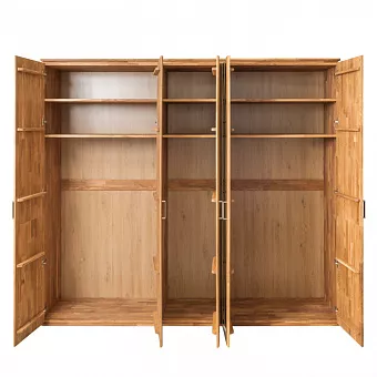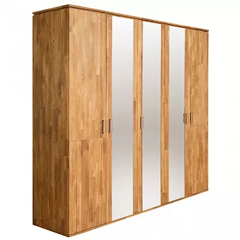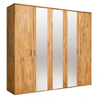 Шкаф Эльза 5 из массива дуба - это функциональная вещь со скандинавским дизайном, который отличается простотой и привлекательностью линий. Этот шкаф имеет пять дверей (три зеркальные), три вешалки для одежды и несколько полок для организации вашего гардероба. Очень привлекательный и минималистичный дизайн, который идеально впишется в вашу спальню. Используется 100% массив дуба. Покрытие интерьерными маслами от компании Хенкель. 100% ЭКО отделка, масла не выделяют никаких токсичных частиц. Гарантия защиты и долговечности древесины, сохранение ее текстуры, внешнего вида и естественности. Вес изделия 294,5 кг. Каркас-массив дуб, фасад- массив дуб. Задняя стенка - фанера, облиц. шпоном дуб.