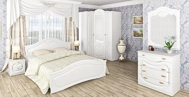 Спальня София выполнена в классическом стиле белоруской фабрикой Неман. Изящные и плавные формы мебели превратят вашу спальню в стильное и одновременно утонченное место для отдыха. Она идеально подойдет тем, кто ценит гармонию в сочетании с классическим стилем.