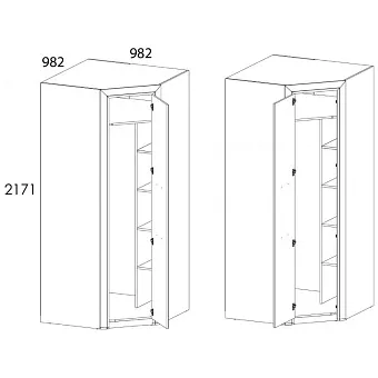 - Артикул Шкаф угловой с полками 97х97 OLIVIA