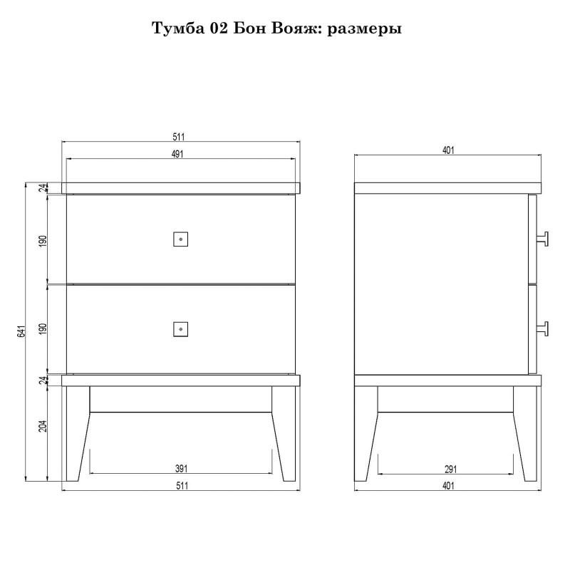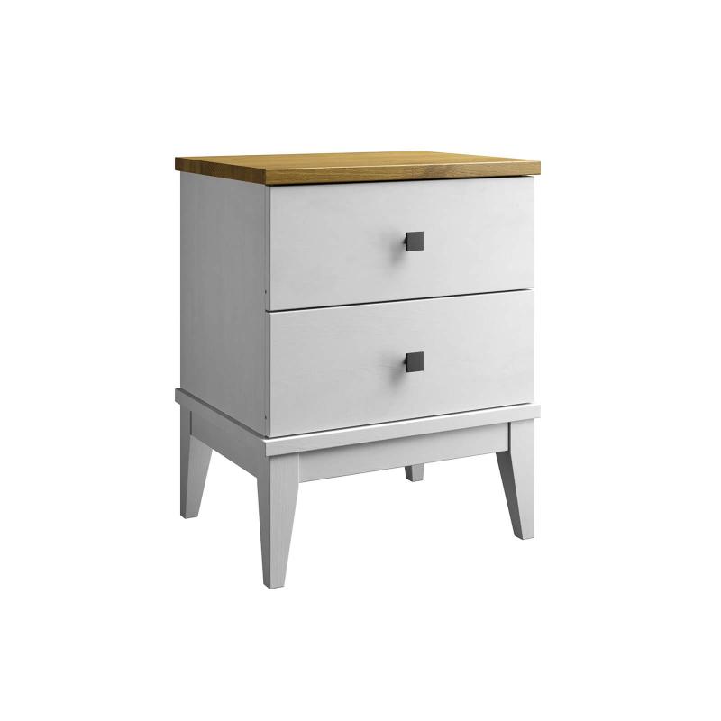 Высокие ножки придают тумбочке легкость и современный стиль, делая её универсальной для различных интерьеров. Два выдвижных ящика на телескопических направляющих полного выдвижения обеспечивают легкий доступ к содержимому и позволяют удобно хранить необходимые мелочи.