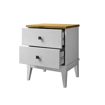 Высокие ножки придают тумбочке легкость и современный стиль, делая её универсальной для различных интерьеров. Два выдвижных ящика на телескопических направляющих полного выдвижения обеспечивают легкий доступ к содержимому и позволяют удобно хранить необходимые мелочи.