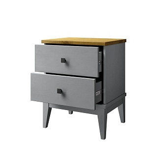 Высокие ножки придают тумбочке легкость и современный стиль, делая её универсальной для различных интерьеров. Два выдвижных ящика на телескопических направляющих полного выдвижения обеспечивают легкий доступ к содержимому и позволяют удобно хранить необходимые мелочи.