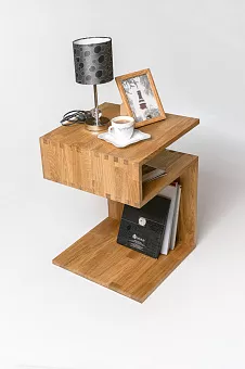 Стол выполнен в скандинавском стиле, полностью из массива дуба. Поступает в собранном виде. Столик приставной подходит как к кровати так и к дивану.