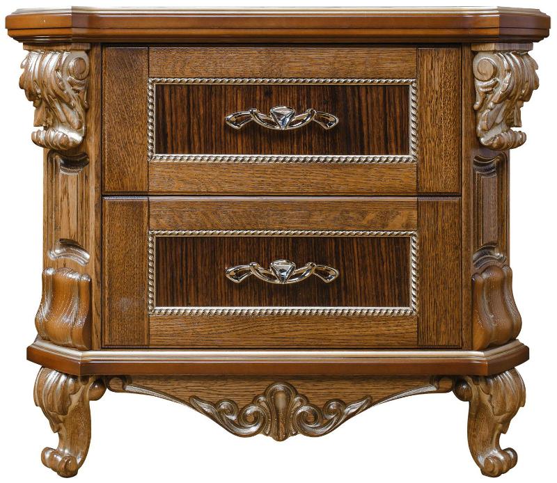 Тумба прикроватная "Альба 03с" П 524.03с палисандр (с зол., с сер.) фабрики Пинскдрев в классическом стиле характерна массивность, основательность и пышность форм. Альба является классическим примером мебели из массива дуба. Она включает в себя мебель для