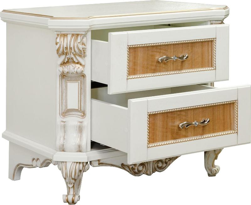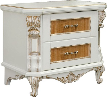 Тумба прикроватная "Альба 03с" П 524.03с слоновая кость (с зол., с сер.) фабрики Пинскдрев в классическом стиле характерна массивность, основательность и пышность форм. Альба является классическим примером мебели из массива дуба. Она включает в себя мебель для