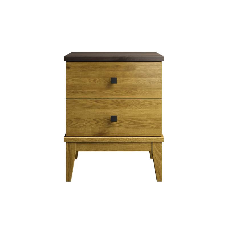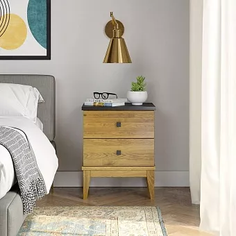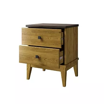 Высокие ножки придают тумбочке легкость и современный стиль, делая её универсальной для различных интерьеров. Два выдвижных ящика на телескопических направляющих полного выдвижения обеспечивают легкий доступ к содержимому и позволяют удобно хранить необходимые мелочи.