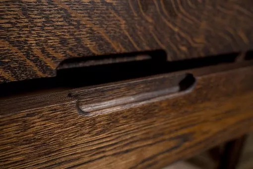 иметацией рейки. Столешницы изделий покрыты шпоном дуба поверх сращенного дубового щита, что придает поверхности
