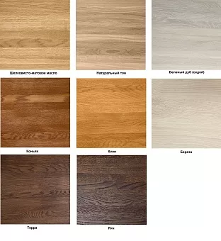 иметацией рейки. Столешницы изделий покрыты шпоном дуба поверх сращенного дубового щита, что придает поверхности