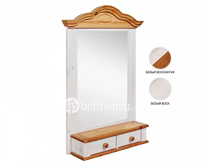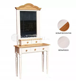 Приобретала в комплекте с туалетным столом. Изящная форма и красивый изгиб зеркала дополняет стол. Смотрится великолепно. Приятный натуральный материал, интересный цвет (брала двойной). Дополнительное место для хранение мелочей в виде полочки и маленьких ящичков только плюс этому зеркалу.