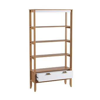 Стеллаж Бридж сквозной широкий с 1 ящиком (стеллаж 001) браун/белый лак