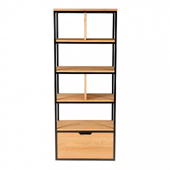 Все элементы Серии Лофт выполнены из массива сосны с металлическим каркасом. Поставляются в собранном виде, кроме кроватей. Стеллаж имеет 6 полок и 1 выдвижной ящик на шариковых направляющих. Толщина полок 2 см. Вес изделия 30 кг. Тон мебели может отличатся от фотографии на сайте.