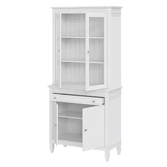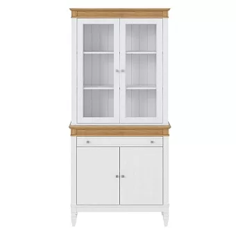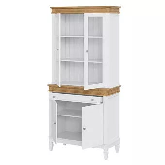 Буфет выполнен из массива сосны. Удобный и вместительный, очень прост, но при этом функционален. Отлично впишется как в обеденную так и в гостиную. Буфет укомплектован двумя полками сверху за стеклянными распашными дверями, одной полкой снизу за распашными дверями и одним ящиком.