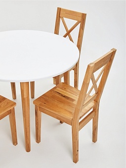 Мебель выполнена из 100% клееного мебельного щита и бруса из массива дуба. Применяется сращенный мебельный щит.