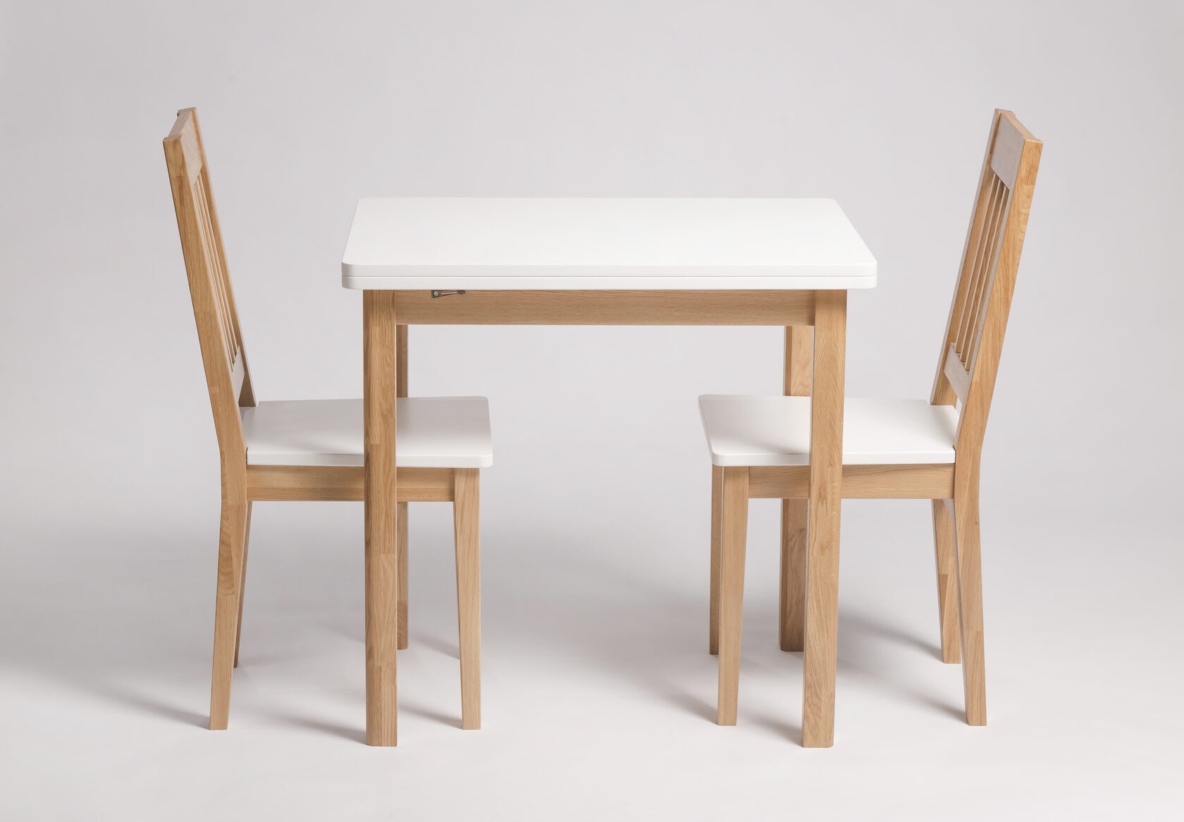 Мебель выполнена из 100% клееного мебельного щита и бруса из массива дуба. Применяется сращенный мебельный щит.