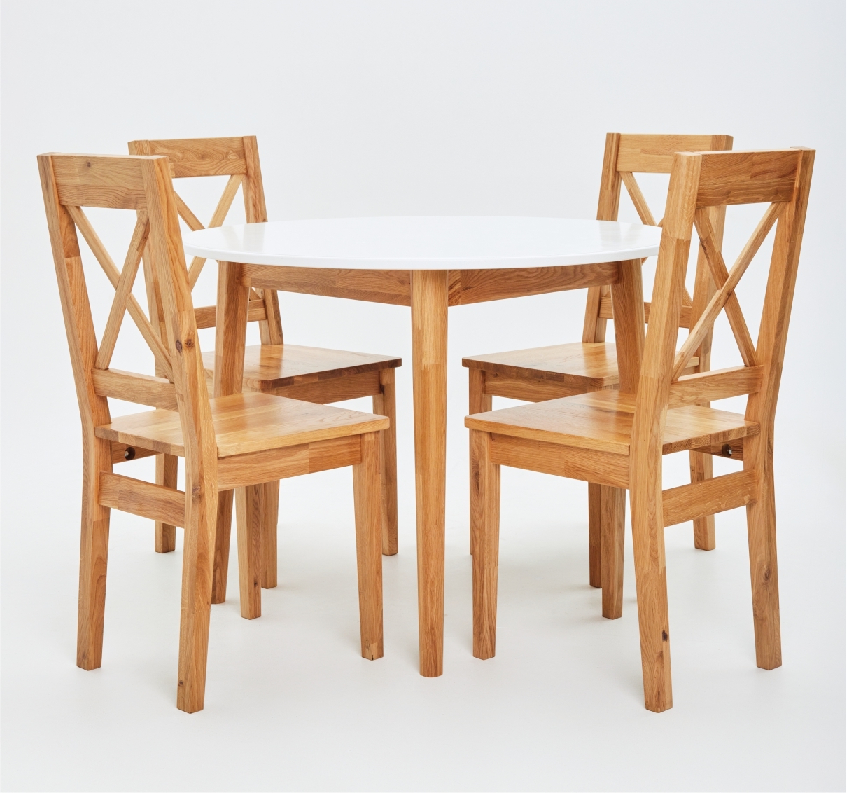 Мебель выполнена из 100% клееного мебельного щита и бруса из массива дуба. Применяется сращенный мебельный щит.