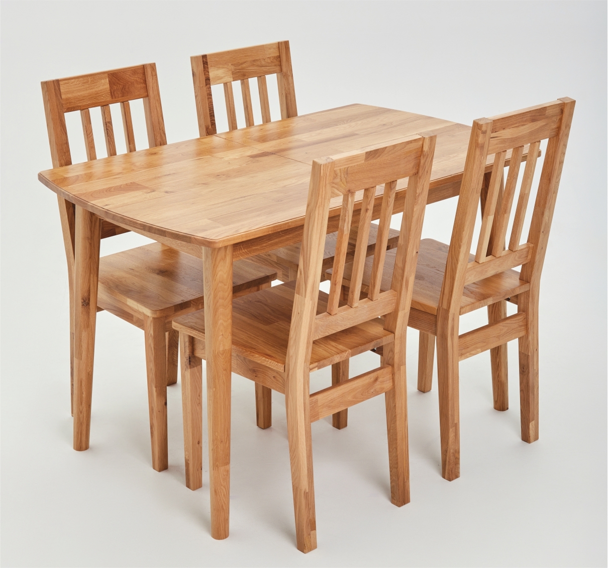 Мебель выполнена из 100% клееного мебельного щита и бруса из массива дуба. Применяется сращенный мебельный щит.