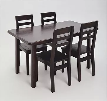 также 4 цвета нитролаковой покраски: бесцветный натуральный тон, шоколад, орех, венге.В коллекции представлены обеденные столы: прямоугольные, круглые раздвижные и нераздвижные компатных и больших размеров.