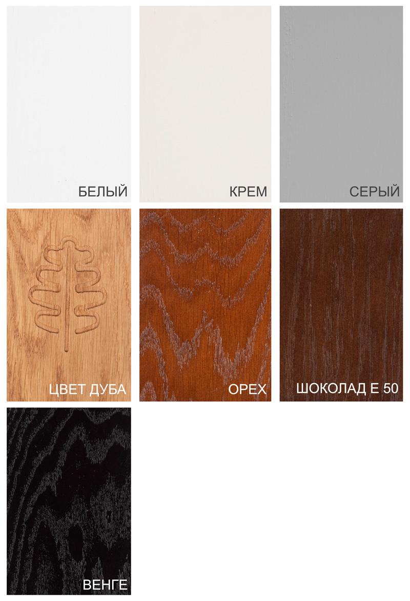 Мебель может быть изготовлена в 7 цветовых вариантах и также их комбинациях. 3 вида эмали: белая эмаль, крем и серый,