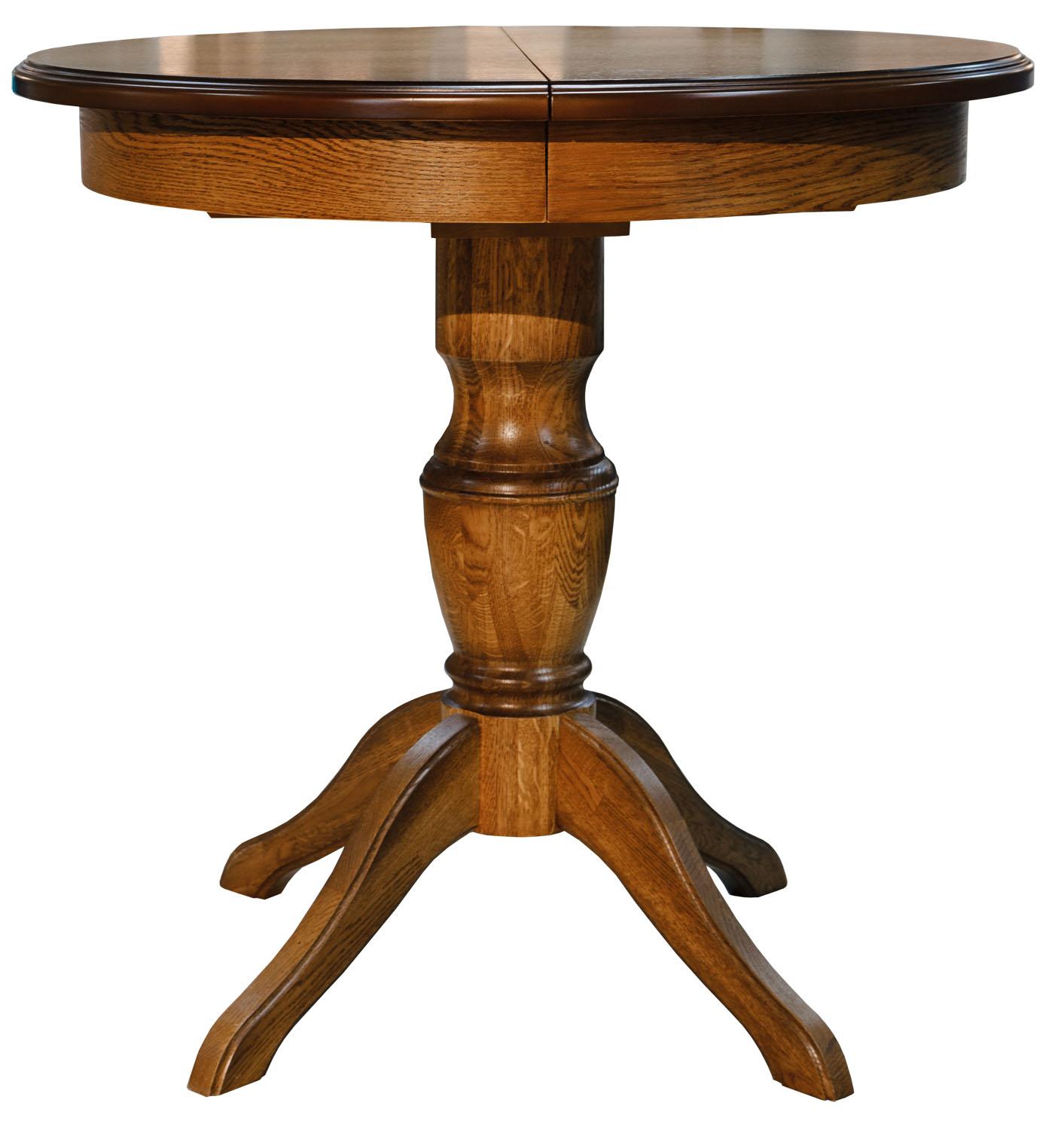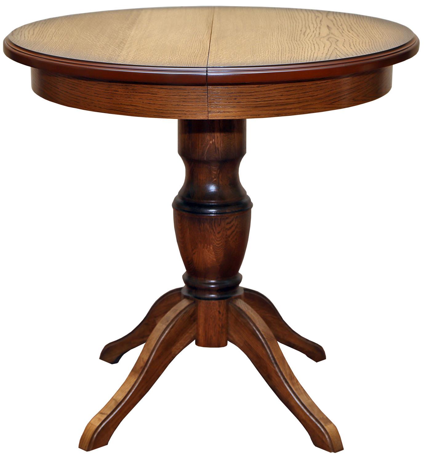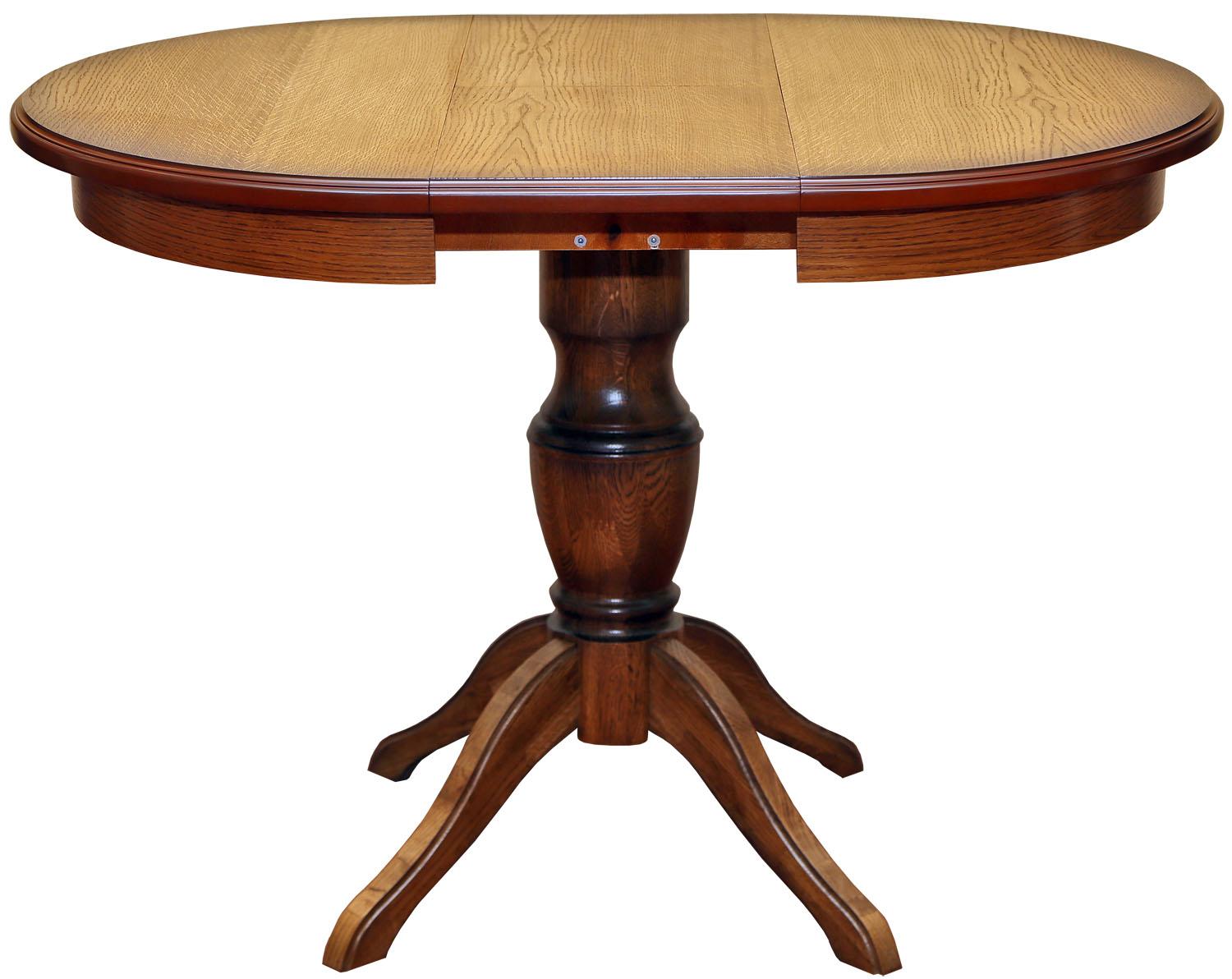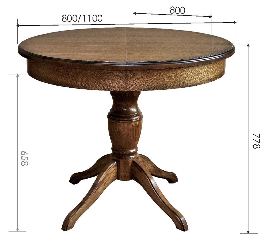 Обеденные столы имеют опоры, выполненные из массива дуба, а крышки – МДФ, облицованная шпоном.