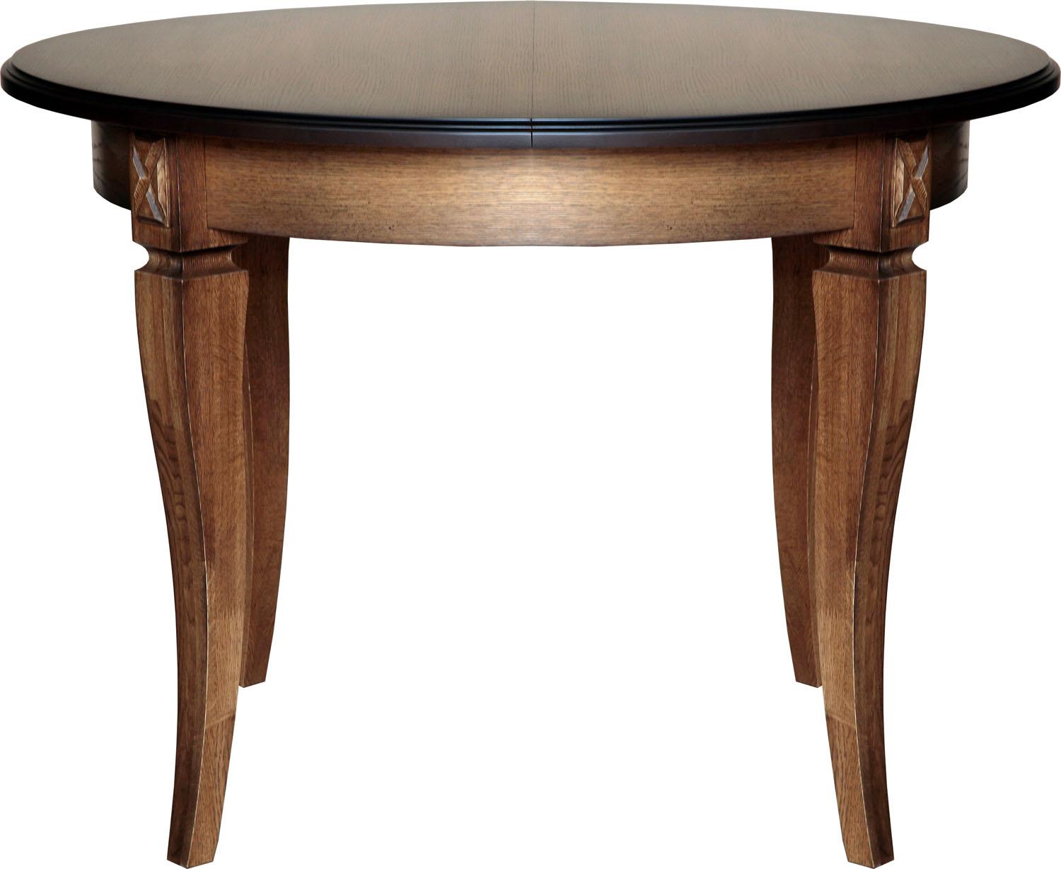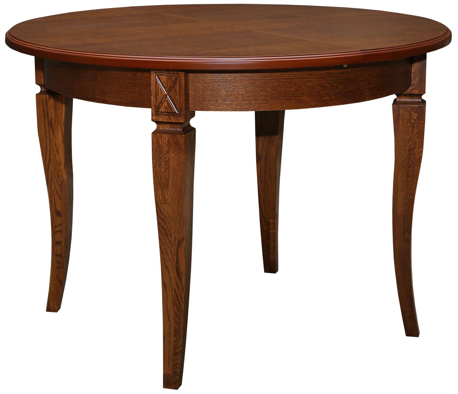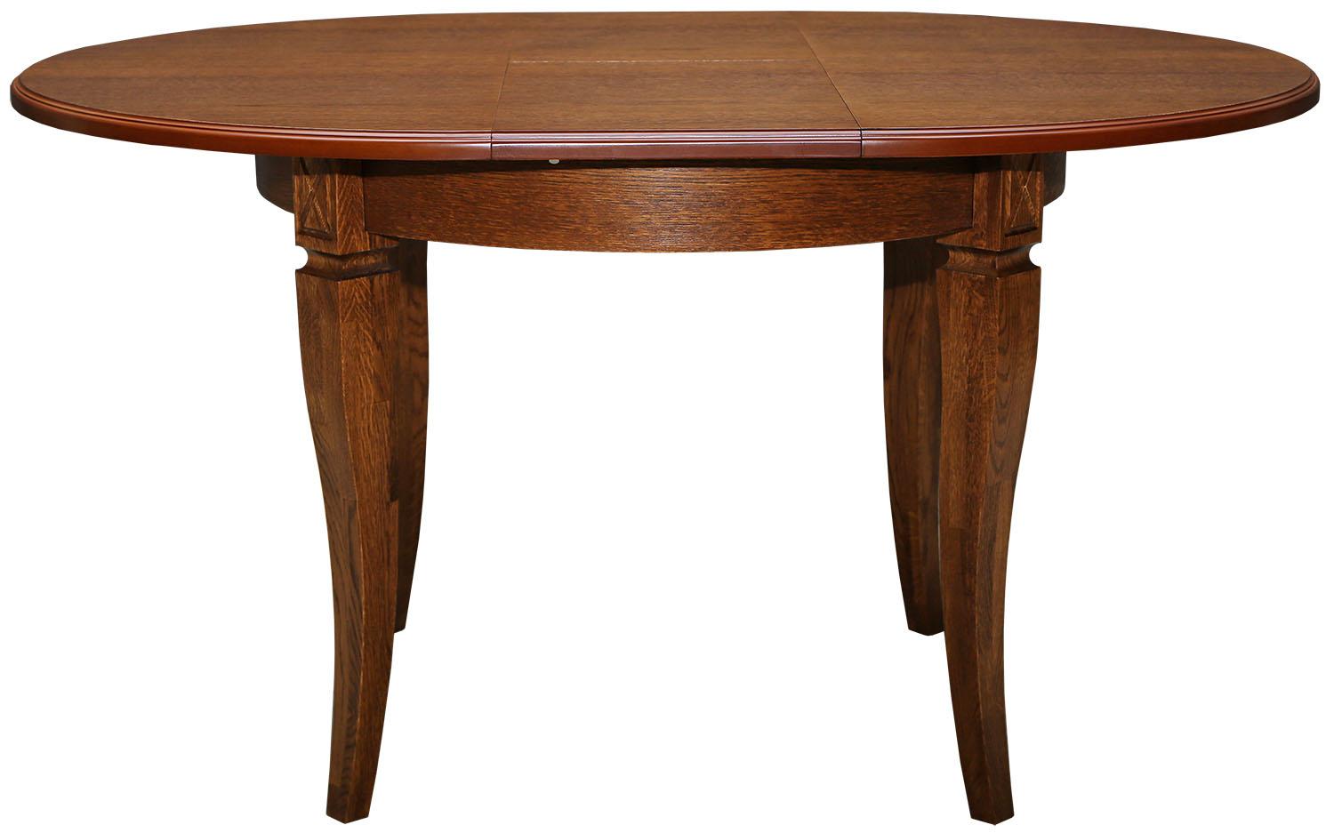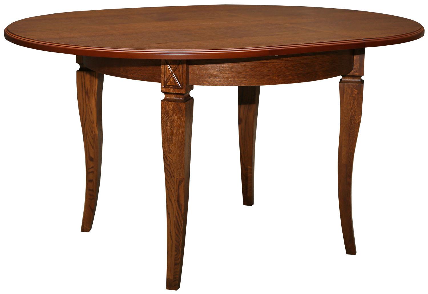 Обеденные столы имеют опоры, выполненные из массива дуба, а крышки – МДФ, облицованная шпоном.