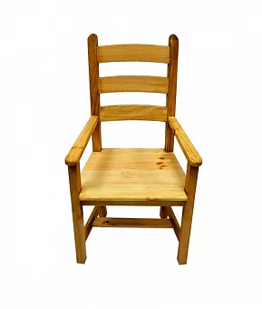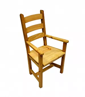 Стул-кресло выполнено из массив сосны. Поставляется в собранном виде. Размер посадочного места глубина 43 см, ширина 54 см. Высота от пола до посадочного места 45см. Тон мебели может отличатся от фотографии на сайте.