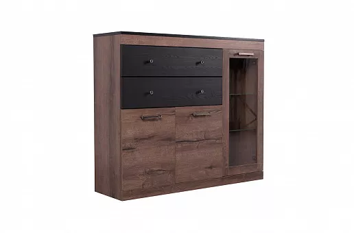 Отличительная черта коллекции JAGGER этой - сочетание контрастов. JAGGER- современная мебель, которая хорошо смотрится и в классическом интерьере. Эта «многомерность» и уверенность были достигнуты благодаря умелому сочетанию дуба монастырского и части фасадов, поддерживаемых в черном цвете. Дополнительно можно укомплектовать подсветкой.