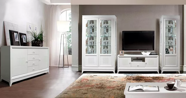 Украшает набор витиеватый рисунок в квадрате, повторяющийся в каждом изделии, что всё вместе создаёт единую композицию, показывает индивидуальность и неповторимость набора. Цокольное основание изделий на профильных ножках, приподнимает изделия над поверхностью. В кровати на основании из брусков ложится рама с ламелями, возможно регулирование матраца по высоте, с помощью комплекта фурнитуры на царгах. Вес изделия 126 кг.