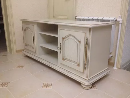 Отделка: варианты цвета «Медовый дуб + з.п.», «Белая эмаль», «Белая эмаль с золотой патиной», лак – на водной основе.