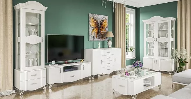 Коллекция «София» создана белорусской фабрикой Неман. Плавные изгибы, глянец фасада и необычные металлические детали дополнят интерьер в романтическом стиле. Фасад: МДФ-16мм, крышка МДФ-22мм Kronospan Szczecinek (Польша) + ПВХ Imawell (Германия).