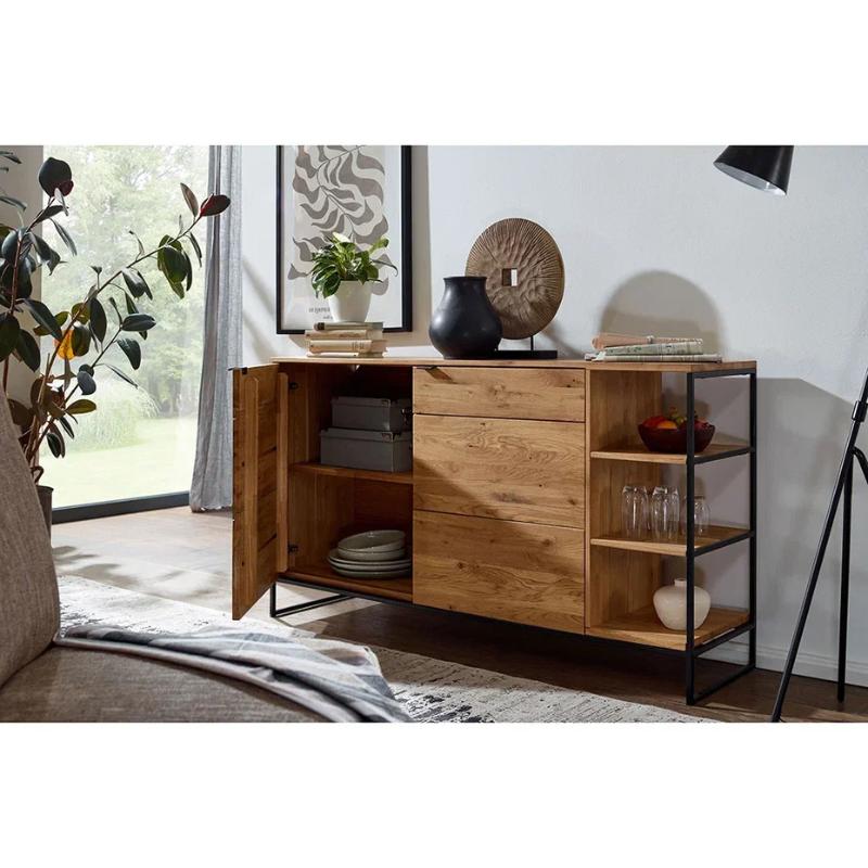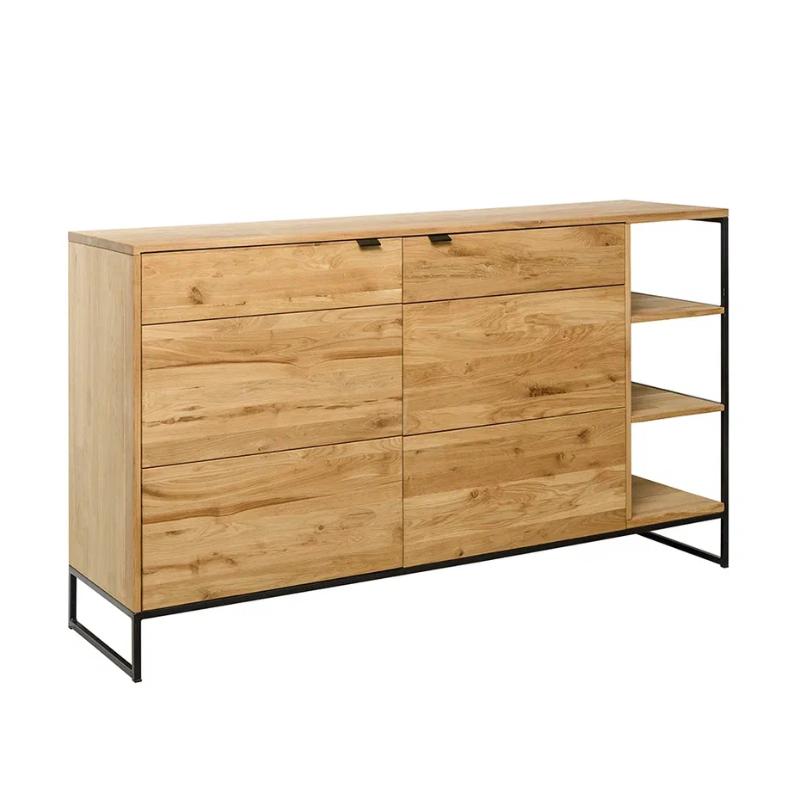 Серия Манхэттен выполнена в стиле лофт из массива дуба. Поступает в собранном виде. Металлический каркас сеч.15х15 мм цвет черный, . Задняя стенка, дно ящиков - фанера, облицованная шпоном дуба. Фурнитурв: направляющие скрытого монтажа с доводчиком Hettich, петли с доводчиками GTV, ручки Trex GTV металл цвет черный. Вес изделия 63,5 кг. Фотографии на сайте могут не передавать точный тон мебели, узнавайте у менеджеров.