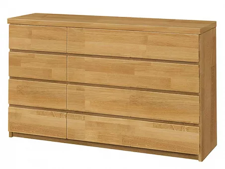 Комод коллекции «Паола» изготовлен из 100 % массива дуба. Комод оснащен качественной фурнитурой скрытого монтажа с доводчиком, дно ящиков выполнены из фанеры. На выбор представлены 2 вида комода с отличными габаритными размерами и различной комбинацией выдвижных ящиков. Открытие выдвижных ящиков реализовано при помощи фрезерованных ручек.